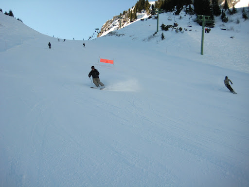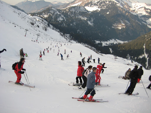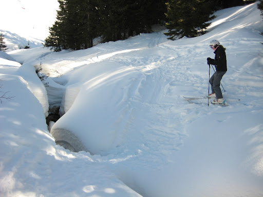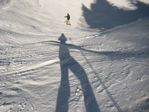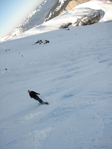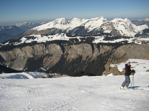 i worked out on the GMaps Pedometer that we covered about 50 kilometers on the trip which started, as usual, in the Ardent car park. This shot was taken at the top of the Chaux Fleurie chairlift looking down towards Plaine Dranse, possibly our favourite area in these mountains. i should clarify that, up 'til now, when i've been talking about Chatel, i've really been meaning Plaine Dranse, which is part of the Chatel ski domain. i'm sure that's a load off your mind.