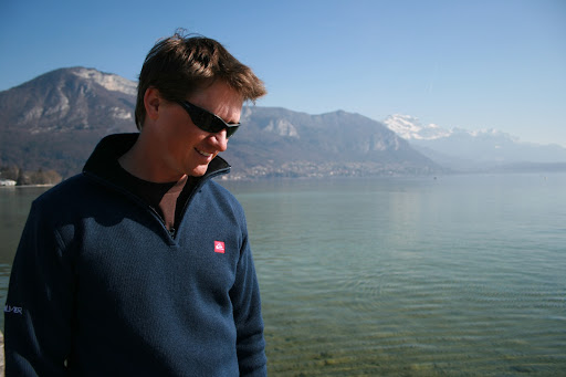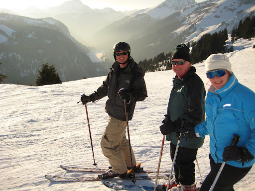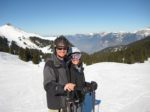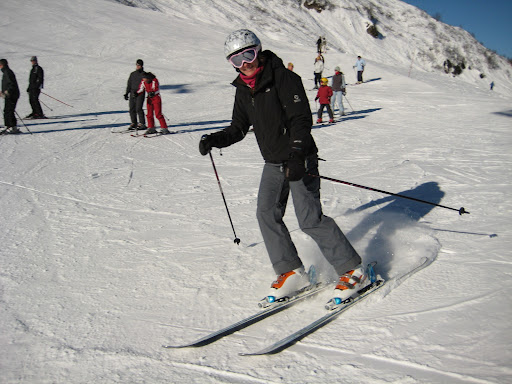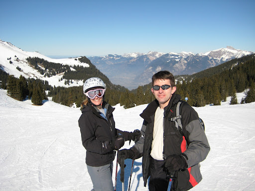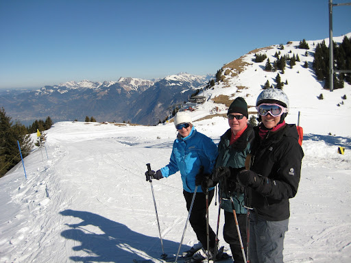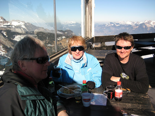 And this is us going slow. Stationary in fact. This is the view from the top of Torgon. The astute reader will notice that this shot gives you a unique perspective on the Alps where you can see both the Dents du Midi (those spiky big mountains on the left) and, in the far distance just above Simon's hat, it's Mont Blanc again. Did i mention that i love the Alps. i love the Alps. And no, Andrew, i'm not just pointing at mountains and saying that i love them. i really do. For all the not-Andrews out there that don't get it, go and watch Anchorman immediately before carrying on reading this.