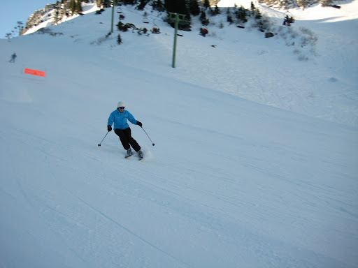 This is Le Linga. A red run in Linga. You can go really fast on it. So fast, you need to use italics. This is Natalie going fast.