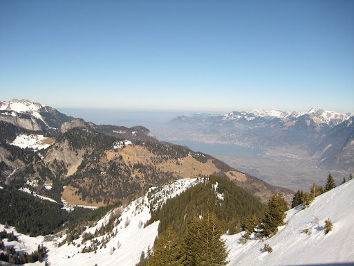 You may have seen this shot before as we always seem to take a photo from this spot. i don't know why, it could be that it's just so stupendously awesome there. It's from the top of the Rosees chairlift. Under the brownish haze in the background is Lake Geneva. Pretty cool, huh?