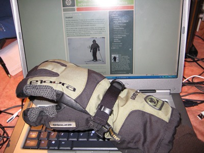 These gloves are just totally stupendously awesome. They even come with a little dangly, luminous arrow to remind you which way is up should you get caught in an avalanche. How back-country is that?
