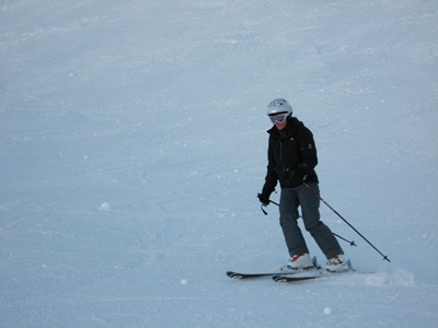 Natalie finishing the enormous moguls on Cubore.